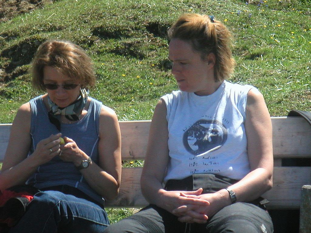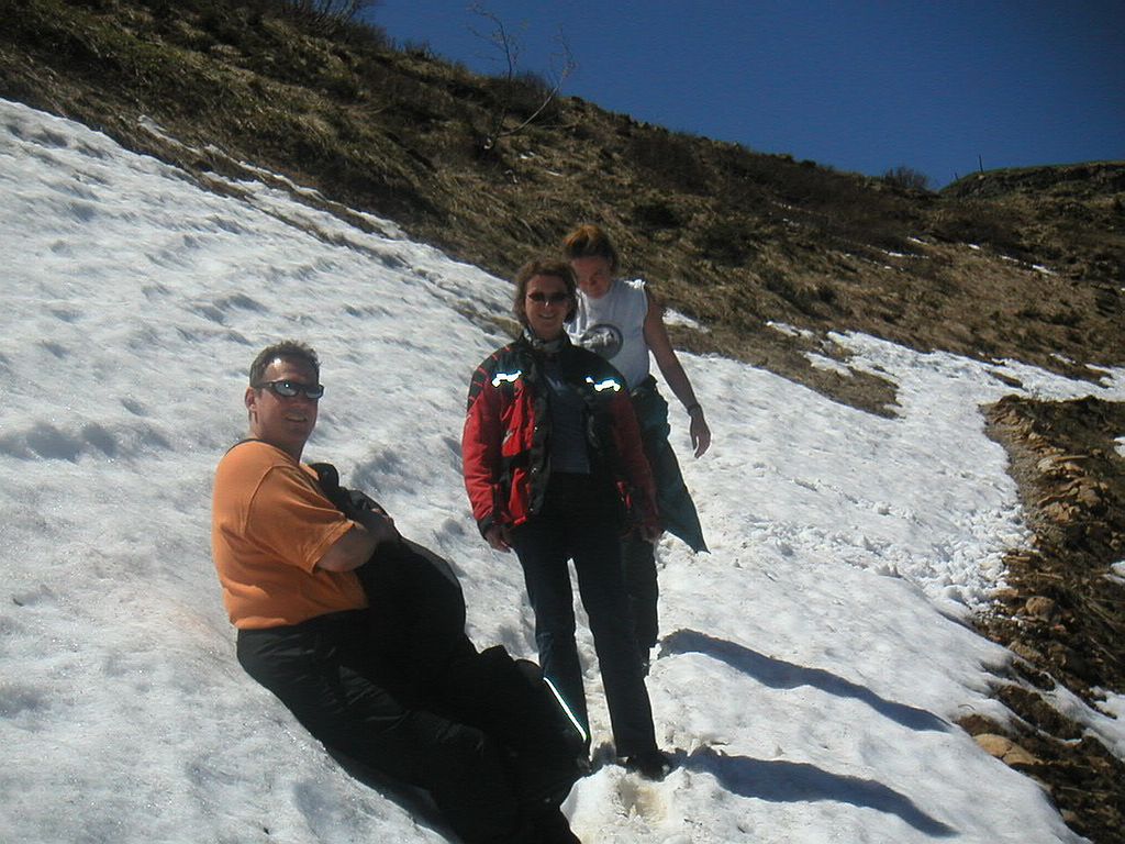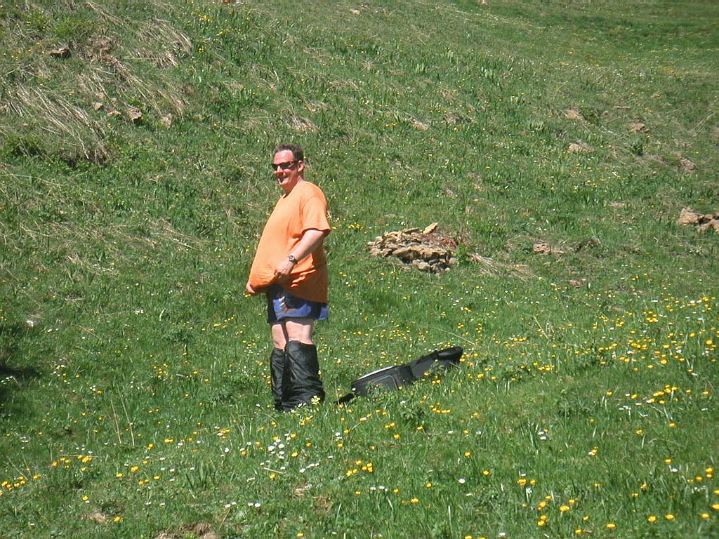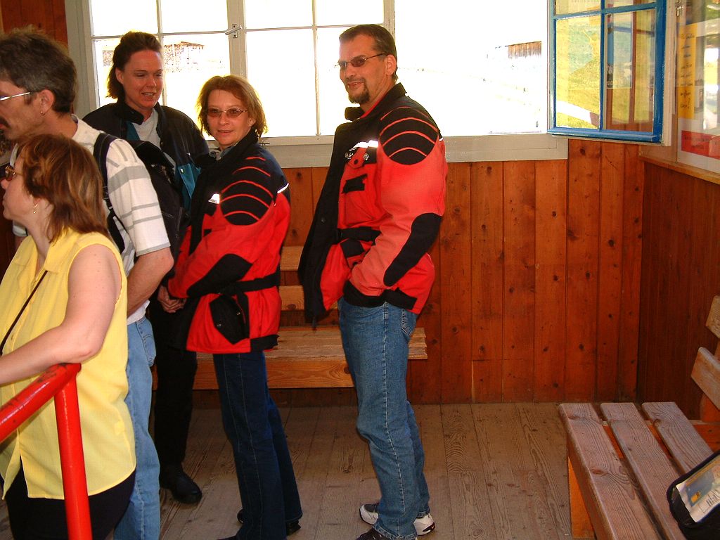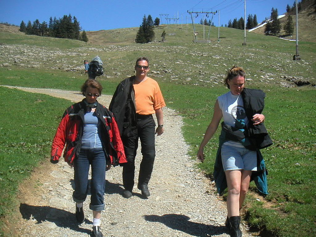 Ein echter Geheimtipp: Mit Motorradklamotten vom Gipfel zur Mittelstation (ein Marsch von ca. 1,5 Std.) zu laufen.