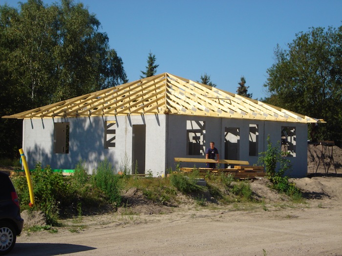 23.08.2012 Der Dachstuhl ist fertig. |
