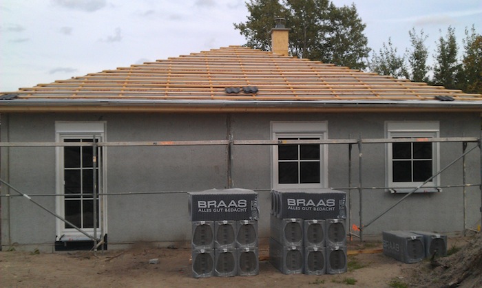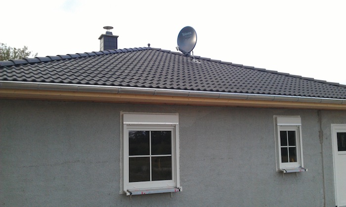 17.09.2012 Das Dach ist fertig gedeckt und nun mit montierter SAT-Schüssel |