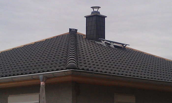 12.09.2012 Erste Dacheindeckung am Schornstein |